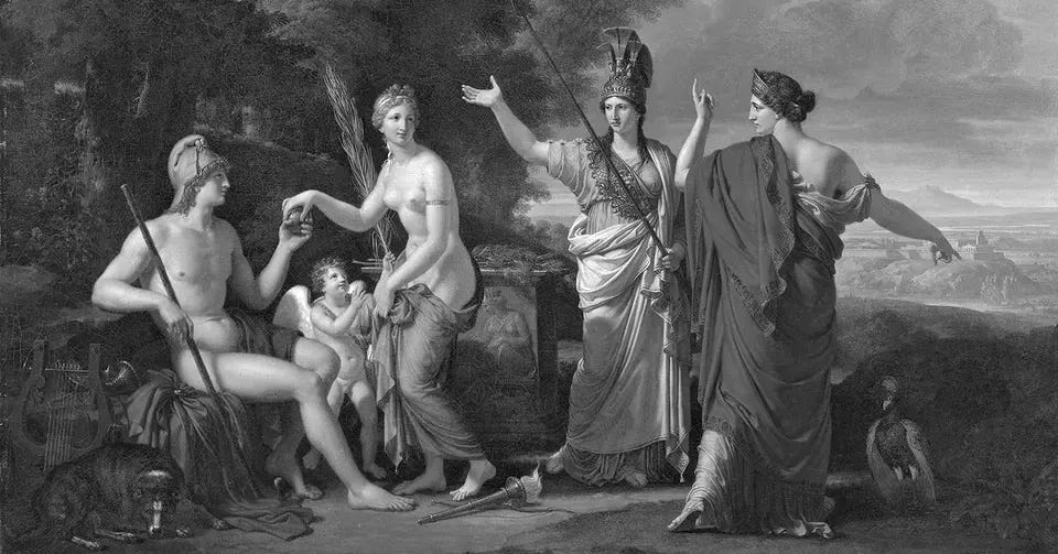 Backstory: Paris must choose between three goddesses. Each offer is a promise about what Paris gets to have and who Paris gets to be. Paris chooses what he wants most, and a private desire turns into a public war. Hera and Athena offer him futures that require a new self. Aphrodite wins because her offer doesn't require Paris to become someone new. This essay is about the difference between becoming and admitting. About offers that change you versus offers that reveal you.