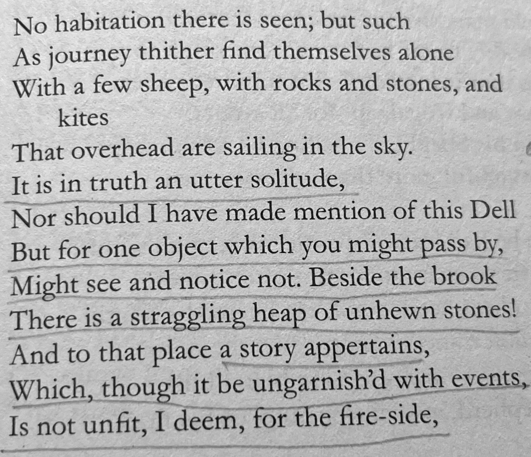 Every inch of Earth has its own story, though most will never be told. Wordsworth pauses at a heap of stones and says it matters. How beautiful a pause is that? Because his intent is not to tell us what happened there, but because it has been.
