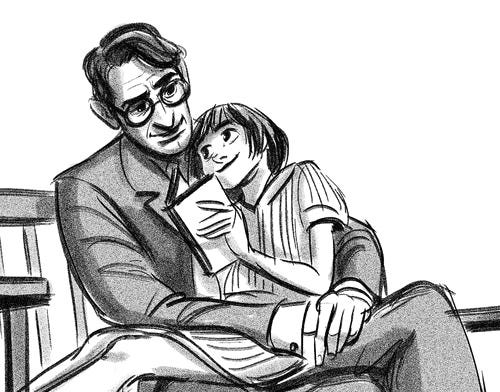 One other thing I like about Atticus is his parenting. In Jem and Scout's eyes, Atticus is a distant figure. But what I love the most about him is that he shapes minds. He is a simple person who reads the newspaper and books to himself and to his children quietly at night until he falls asleep. He never disciplines through shouting or physical discipline but with words. But slowly, they realize and see him more clearly: he is raising them not just to behave, but to understand. Not just merely to obey, but to think. He also lets them attend the trial, so they see for themselves what is the world they are going to step into. He speaks to them like adults. He never simplifies the truth for the sake of comfort. Atticus teaches them to face the world as it is and live decently. In this, Atticus becomes less of a father and more of a moral teacher.